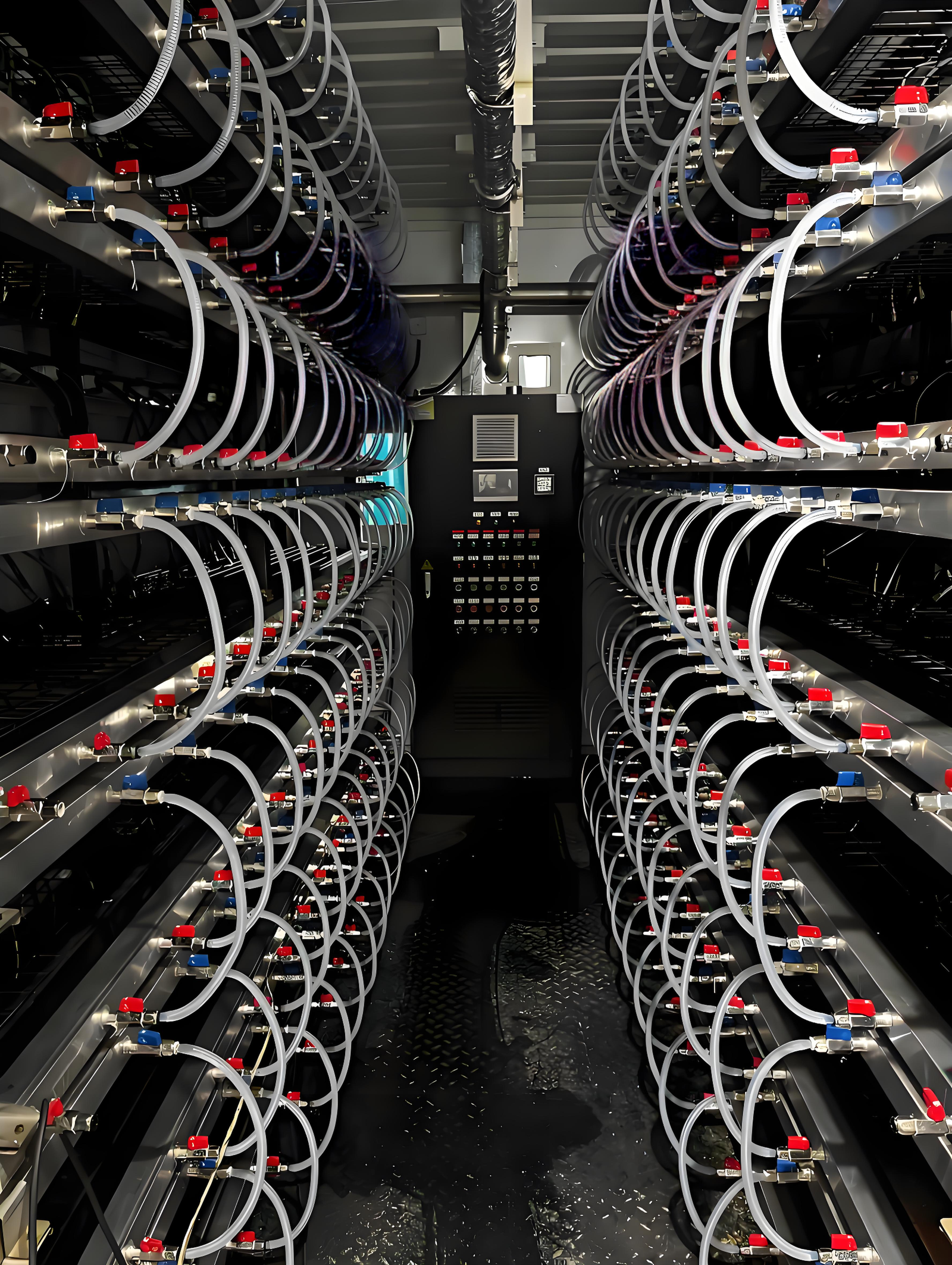 Liquid cooling systems, with their efficient cooling capabilities, have gradually become the mainstream choice for data centers to reduce energy consumption. Take immersion liquid cooling as an example: it can fully immerse servers in insulating cooling liquid, and through liquid boiling or circulating heat dissipation, its heat dissipation efficiency is 50 times higher than that of traditional air cooling. It can support a high power density of over 100kW per cabinet, while reducing noise by 90%. The PUE (Power Usage Effectiveness) value of data centers can reach around 1.05, significantly improving energy utilization efficiency.